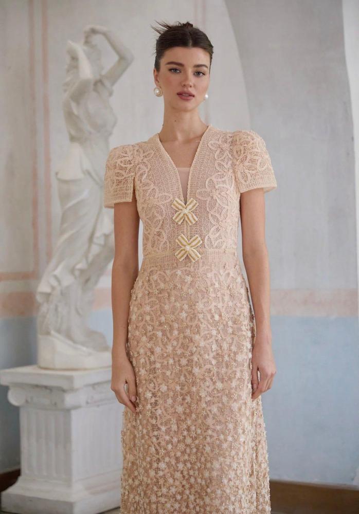 فستان: راقي بتطريز أنيق وقصة كلاسيكية، مناسب للحفلات والمناسبات الخاصة ✨
