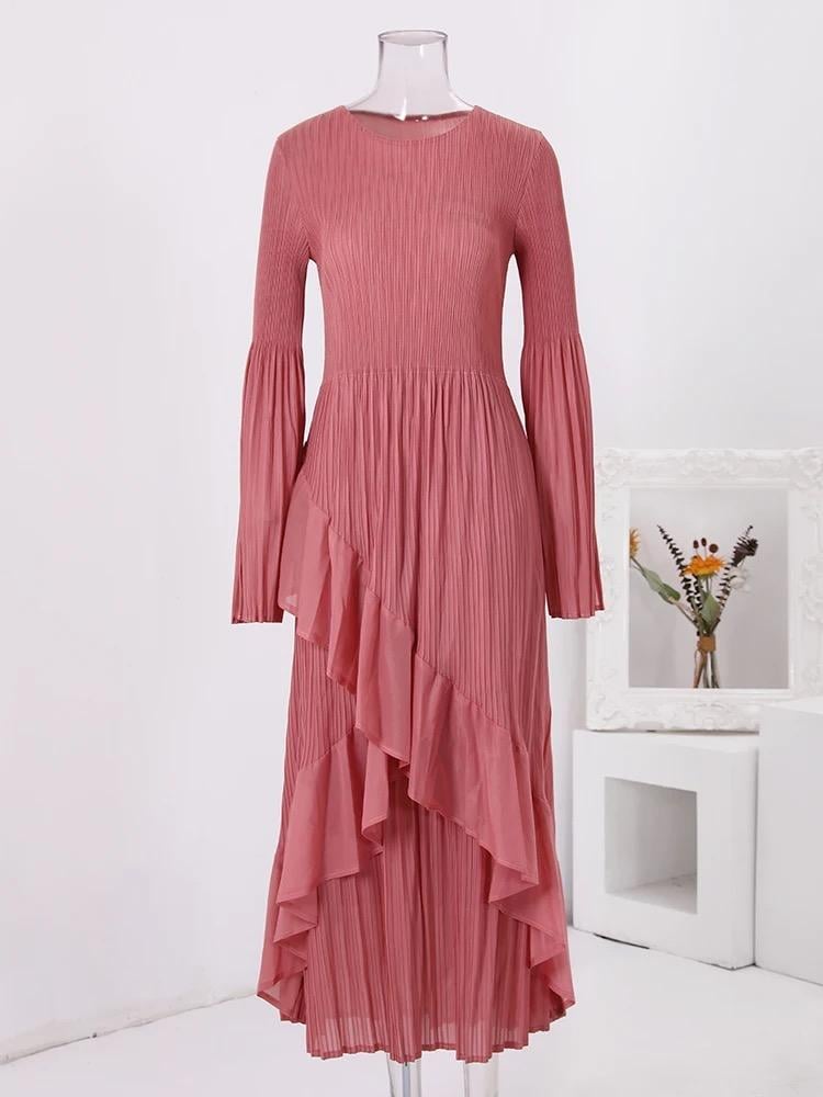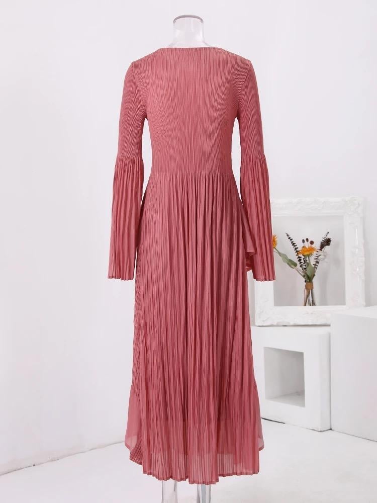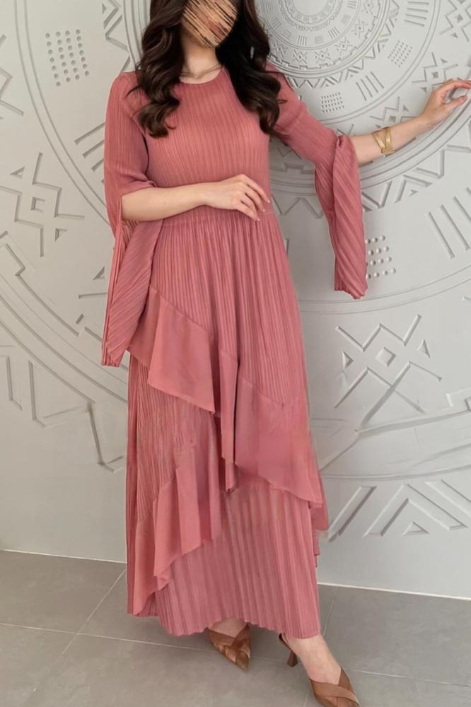 - فستان طويل أنيق يتميز بقصه صدر مثالية تبرز جمال القامة ويتمير بأكمام واسعه تظيف لمسه أنثويه وأناقة مع فتحه انسيابية تجعل الحركة سهله ومريحه
