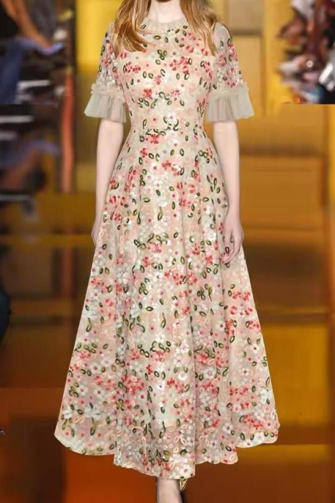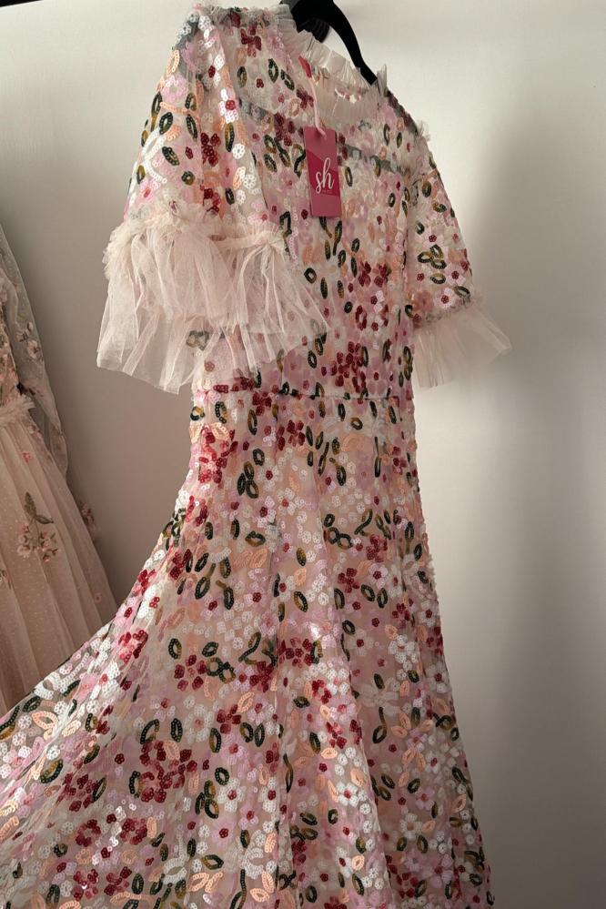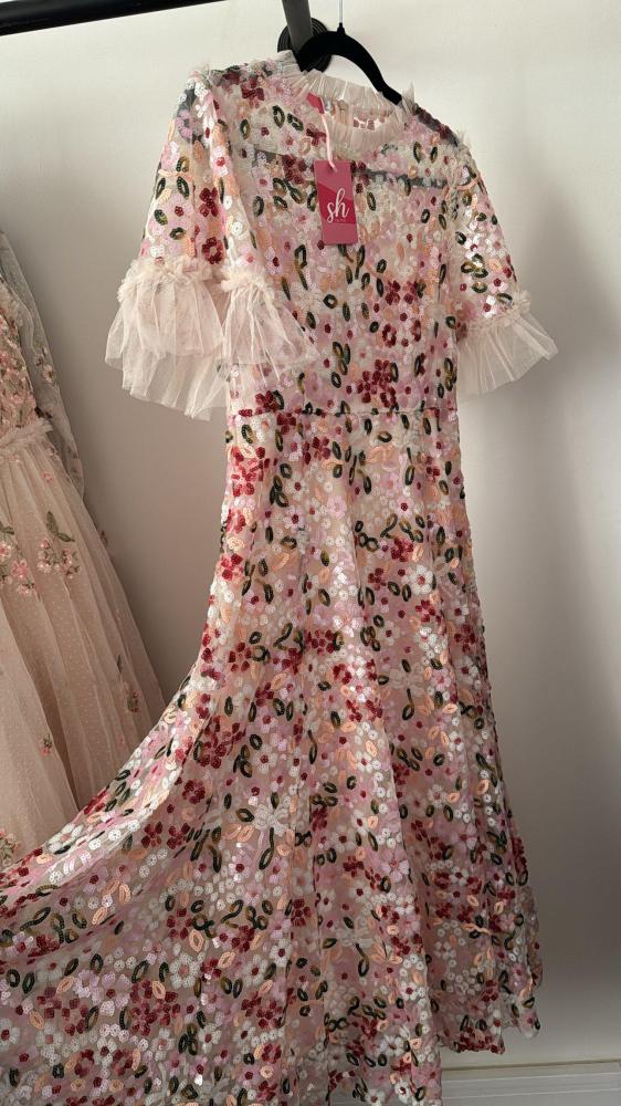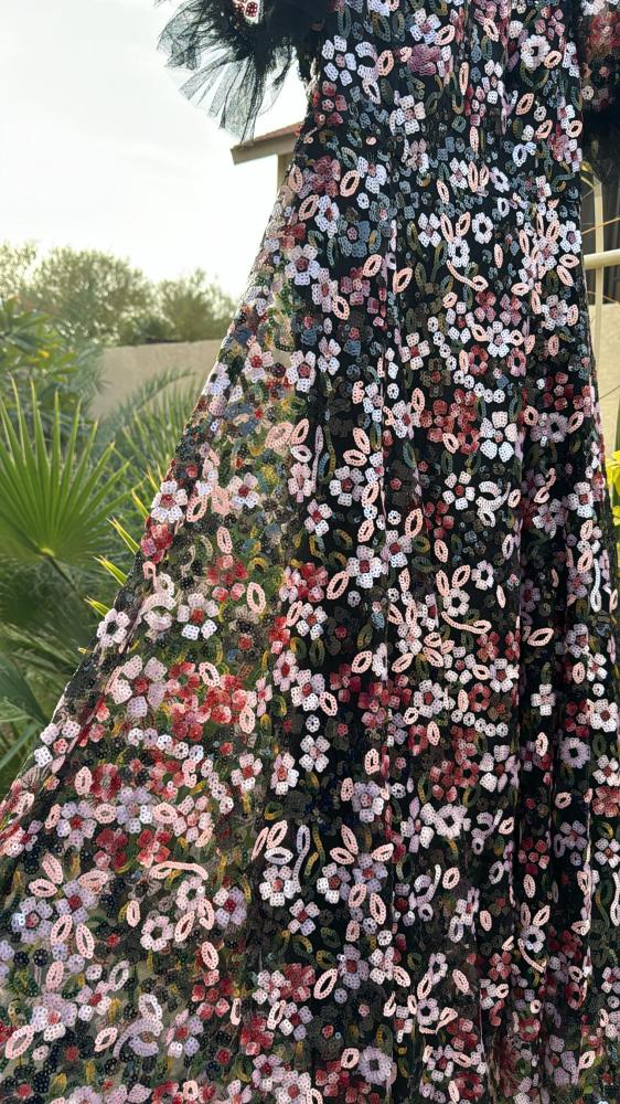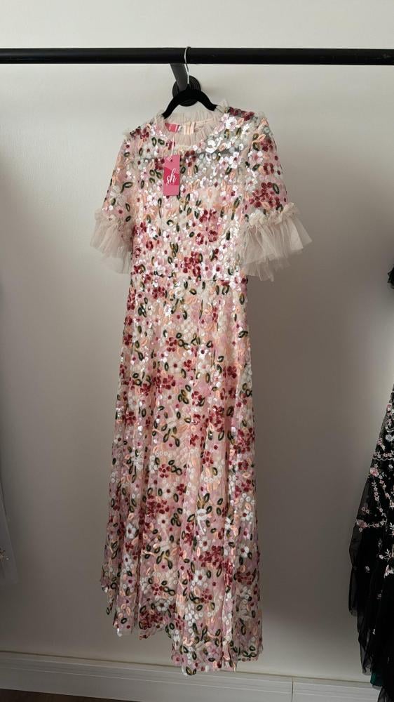 فستان طويل أنيق مزين بشك كامل .