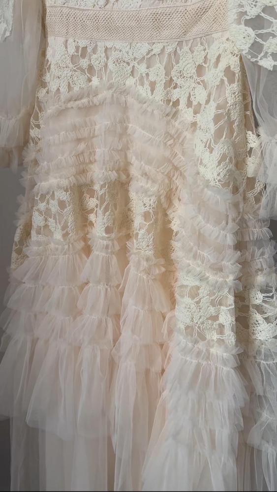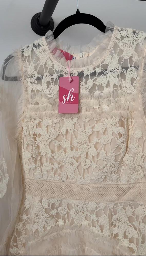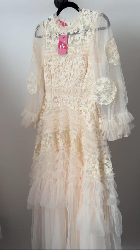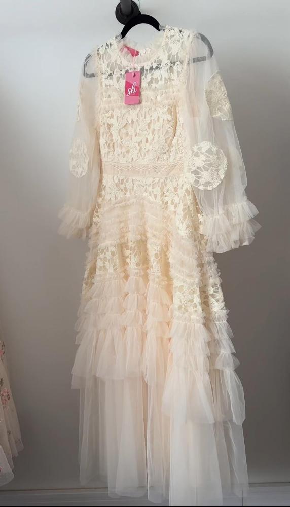فستان طويل قماش تل مُزين ب تطرريز