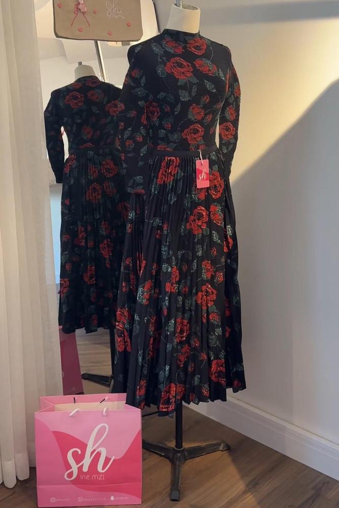 كريب مطبوع بنقشة ورد، ناعم ومتماسك بملمس مموج أنيق ✨.