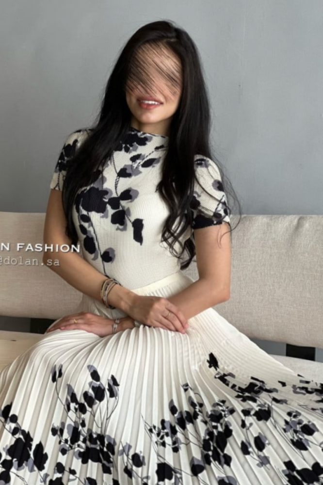 طقم توب وتنورةفري سايز يلبس من S الى Lطول المودل 166 cmمقاس التوب : العرض 75-120 سممقاس التورة : العرض 62-116 سم ، الطول : 78 سم.