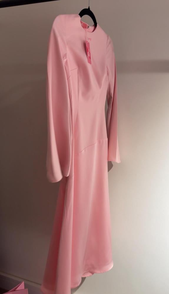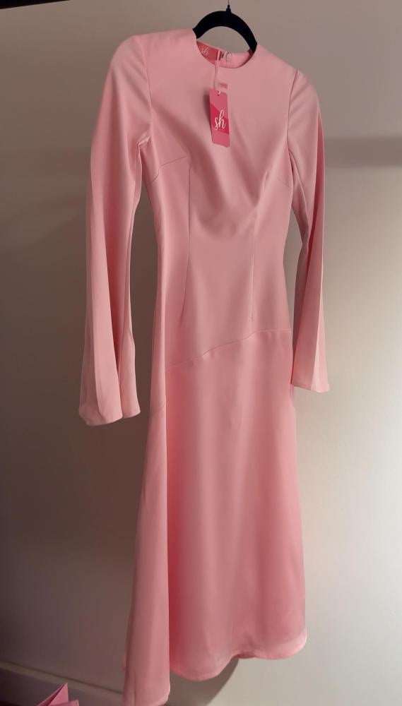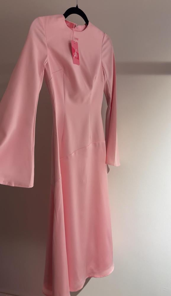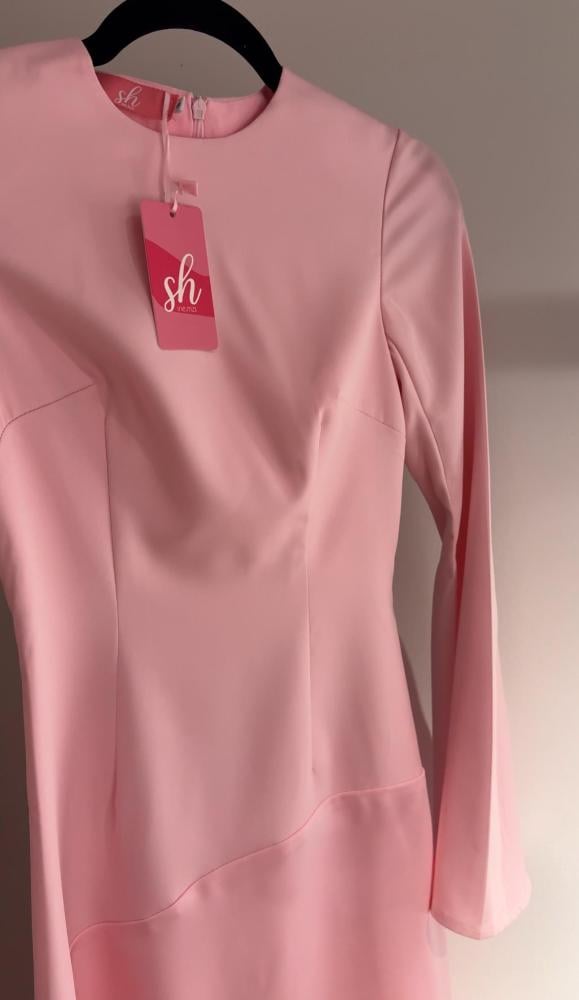 فستان: نيق بتصميم بسيط وناعم، بقصة مستقيمة وأكمام طويلة تمنحك إطلالة راقية ومناسبة لمختلف المناسبات 🌸✨